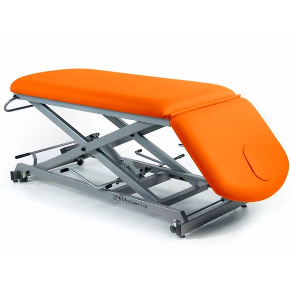 Marquesa hidráulica de reconhecimento de dois corpos. Dispõe de respaldo reclinable em negativo e subida reta sem deslocação lateral, com portarrolos e tampa facial. Disponível com opção de rodas escamoteables.