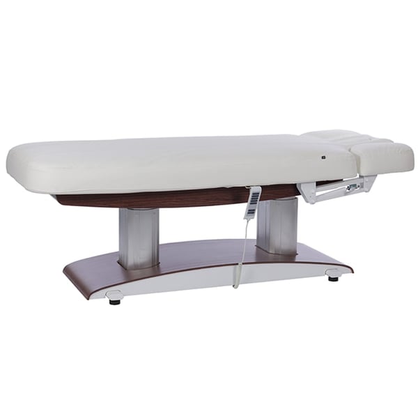 Marquesa de SPA de 4 motores que regulam a altura e a inclinação do respaldo, do reposapiés e de toda a marquesa. Conta com um colchón de uma única peça com 3 secções.