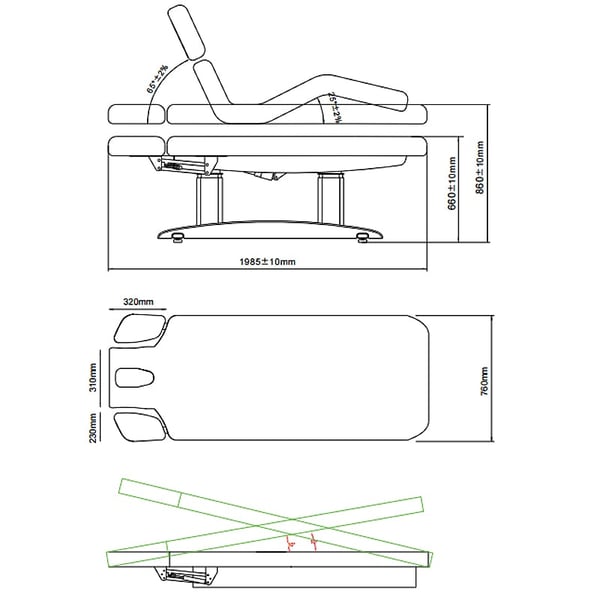 Marquesa de SPA, estética e massagem Troch de três corpos: Elétrica com quatro motores que regulam a altura e a inclinação do respaldo