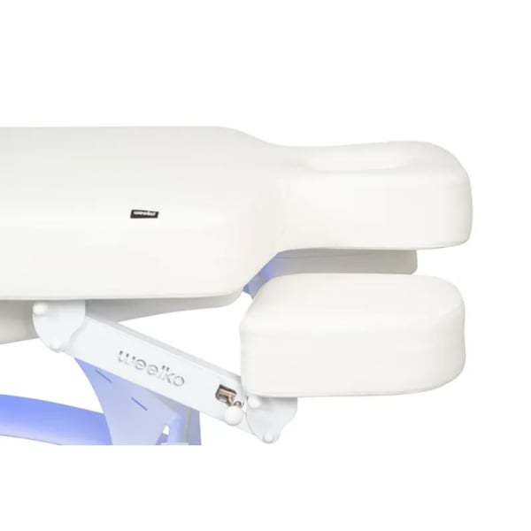 A marquesa também incorpora reposabrazos ajustables, cabeça com buraco facial, rodas para facilitar a deslocação e portarrolos integrado, convertendo em uma solução completa para centros de spa e wellness.