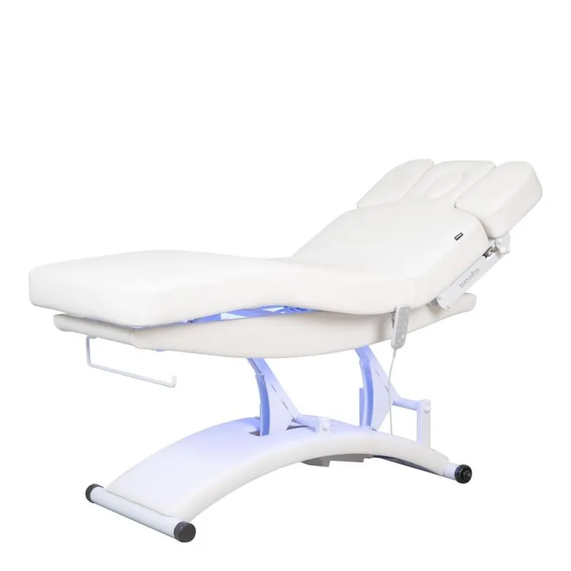 Está equipada com 3 motores elétricos que permitem ajustar a altura, a inclinação do respaldo e o reposapiés. O colchón de uma só peça com 3 secções e acolchado ultra confortável de 12 cm inclui sistema de calefação integrado, oferecendo uma experiência mais relajante durante tratamentos prolongados.