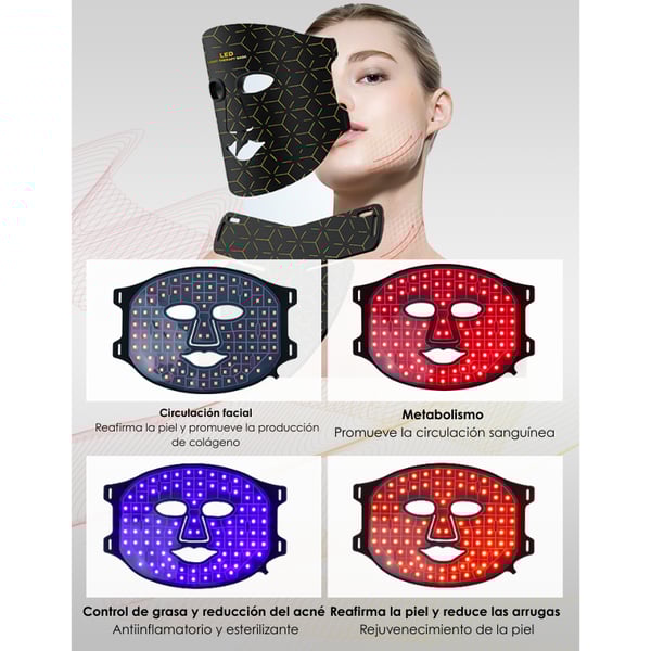 Máscara Facial e Pescoço de Fotobiomodulación: Terapia LED Luz Vermelha e Infravermelha para Rejuvenecimiento