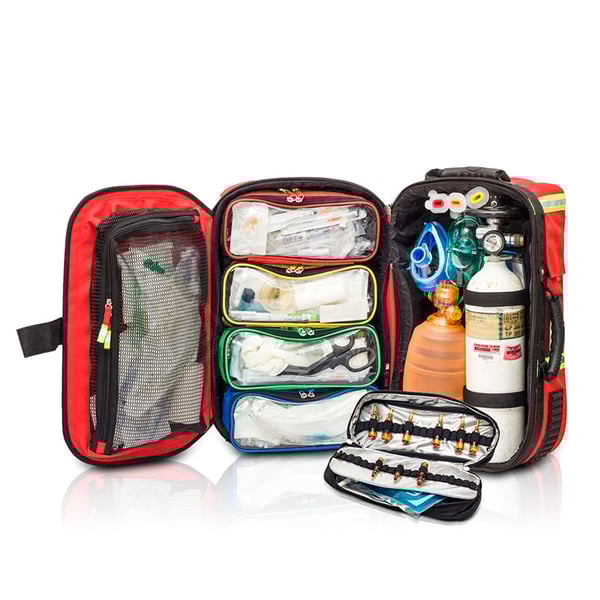 Maletín de emergências de Suporte Vital Avançado (SVA). A sua abertura com sobrepõe desdobrável permite aceder aos instrumentos necessários para a atuação nos diferentes palcos de emergências, localizando os espaços de maneira que se facilite a sua rápida identificação, e por tanto, extração dos mesmos.