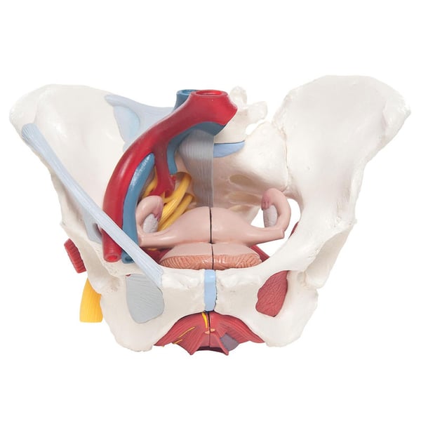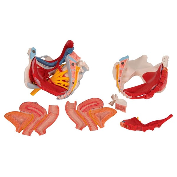 O modelo anatómico de pelvis feminina de seis partes está fabricada a partir de uma pelvis original feminina e representa informação detalhada a respeito da topografia dos ossos, ligamentos, copos, nervos, músculos do andar pélvico e órgãos pélvicos femininos.