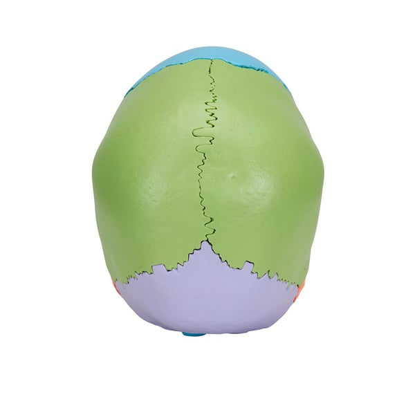 Modelo de crânio desmontable em 22 peças. Este modelo realista este realizado em plástico resistente indeformable e permite apreciar facilmente a complexa estrutura do crânio humano. Os 22 ossos que o compõem mostram fielmente os detalhes e resultam muito singelos de montar e desmontar graças às conexões que há entre ossos pouco visíveis e estáveis. A manipulação do crânio é segura e singela. Além disso, este crânio não se desmonta constantemente, como ocorre com os modelos com conexões magnéticas mais instáveis. As bordas dentadas das suturas refletem o grau de soldadura de um crânio humano verdadeiro com grande realismo.