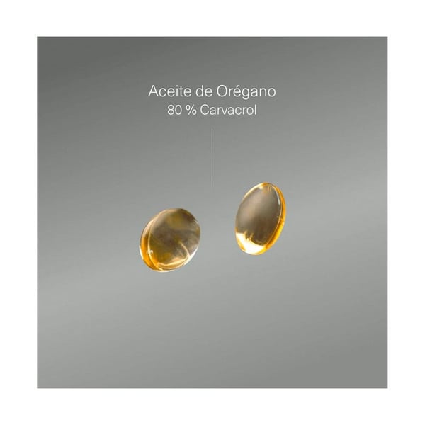 - Ingrediente principal: óleo de orégão (Origanum vulgare) estandardizado, na cada cápsula macia contribuem-se 200 mg de óleo com aproximadamente 160 mg de carvacrol, que é o composto fenólico mais representativo desta planta.