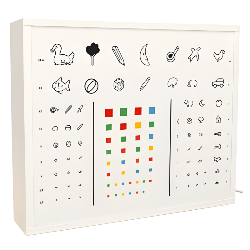 O Optotipo Infantil em Aço Esmaltado OPT102 (Wecker) é uma equipa desenhada para a avaliação da agudeza visual em pacientes pediátricos.