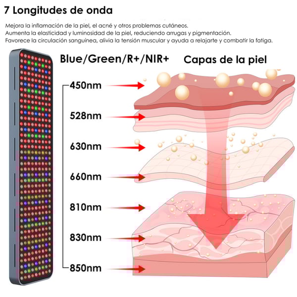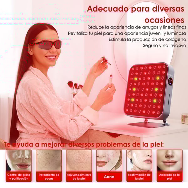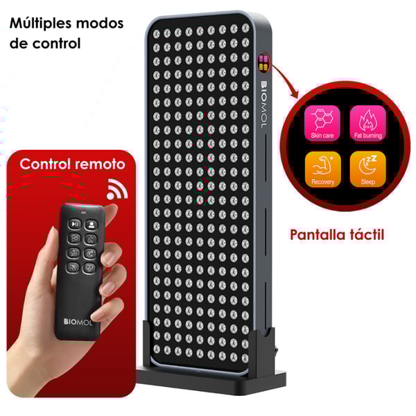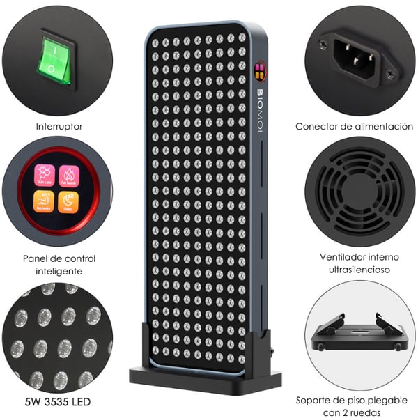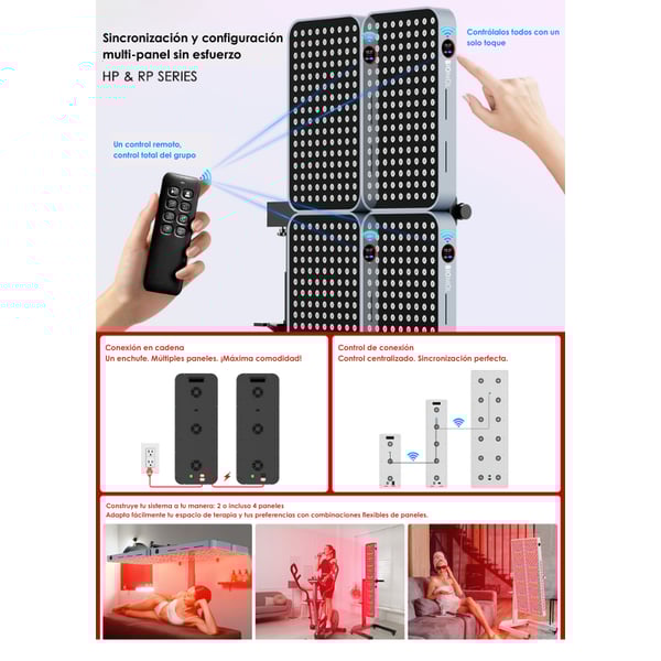 - Painel de uso corporal completo ou segmentado, ideal para sessões de fototerapia desde casa.