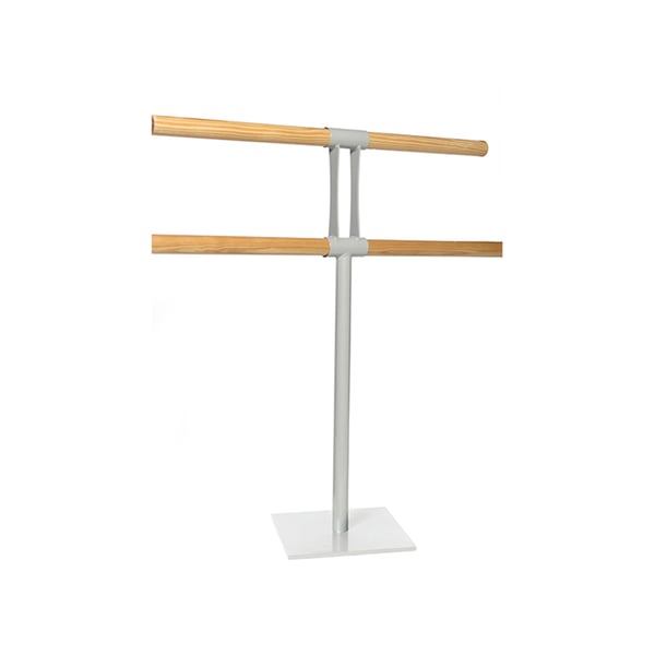 Suporte portátil metálico de pé indicado para fixar a barra de ballet. A sua base é pesada para tentar estabilidade ainda permitindo a sua mobilidade. Disponível em dois modelos. A distância entre barras é de 27 cm no modelo duplo. Tornillería não incluída.