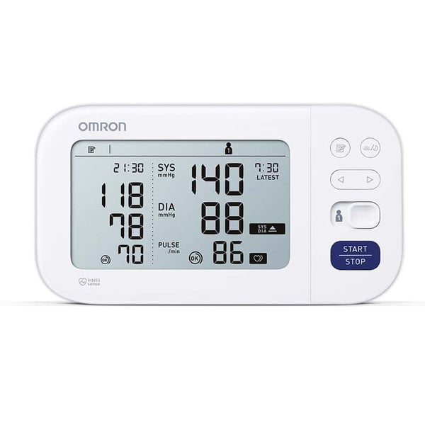 Tensiómetro automático de braço Omron M6 Comfort: Com detecção de arritmias, ecrã dual e resultados mais precisos(HEM-7360-E)